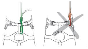 Y mucho cuidado, la cuerda debe pasarse por el lugar correcto del arnés.