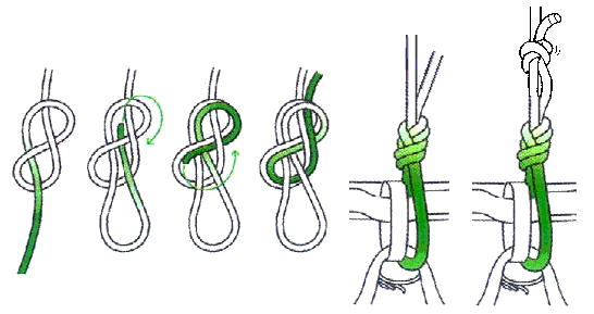 Para encordarnos usaremos un "Ocho" rematado con un "Nudo de pescador doble".