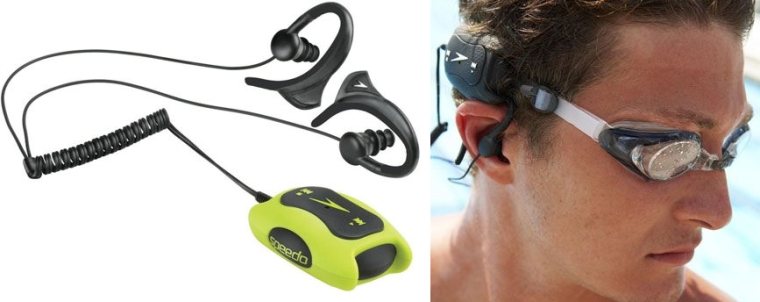 El Aquabeat de Speedo (www.speedo.com) es un reproductor MP3 estanco y sumergible hasta 3 m de profundidad, orientado a su uso en natación y también muy interesante para otros deportes como rafting, kayak o surf. Con el Aquabeat de Speedo podremos practicar deportes acuáticos o pasar las tardes en la playa o la piscina acompañados de nuestra música favorita. Dispone de sistema de fijación para llevarlo en las gafas de natación.